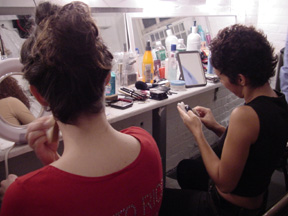Candy) getting into make-up as "Sun-burn" boy (left). Actually