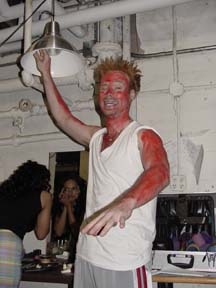(Yellow hair) and Mario B., the Papa of the Mambo Mambo Mamas (Green